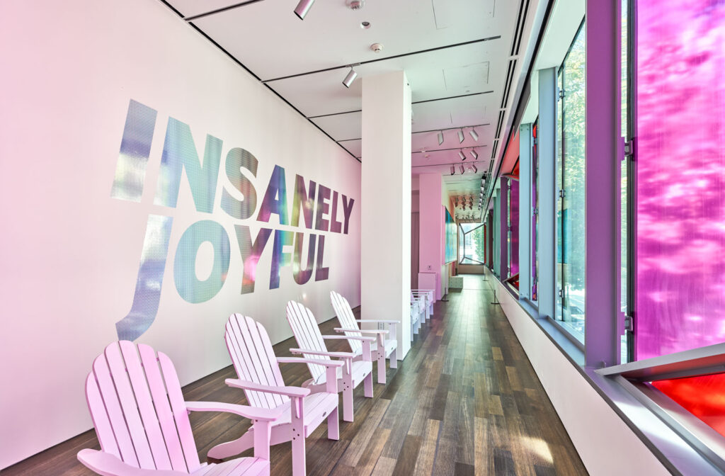 Images: Installation views of Rave into the Future: Art in Motion, October 24, 2025–January 26, 2026. Photograph by Kevin Candland, © Asian Art Museum of San Francisco. Artworks: Terribly Jolly, 2022–2025; Puff Out M_2205_pink, 2017–2025; Insanely Joyful, 2025 .